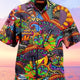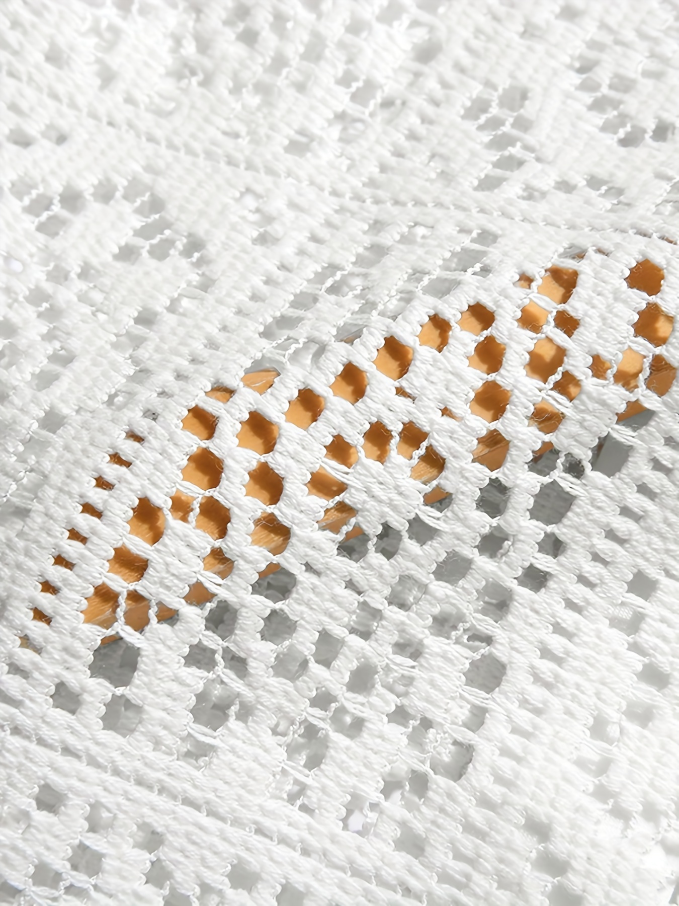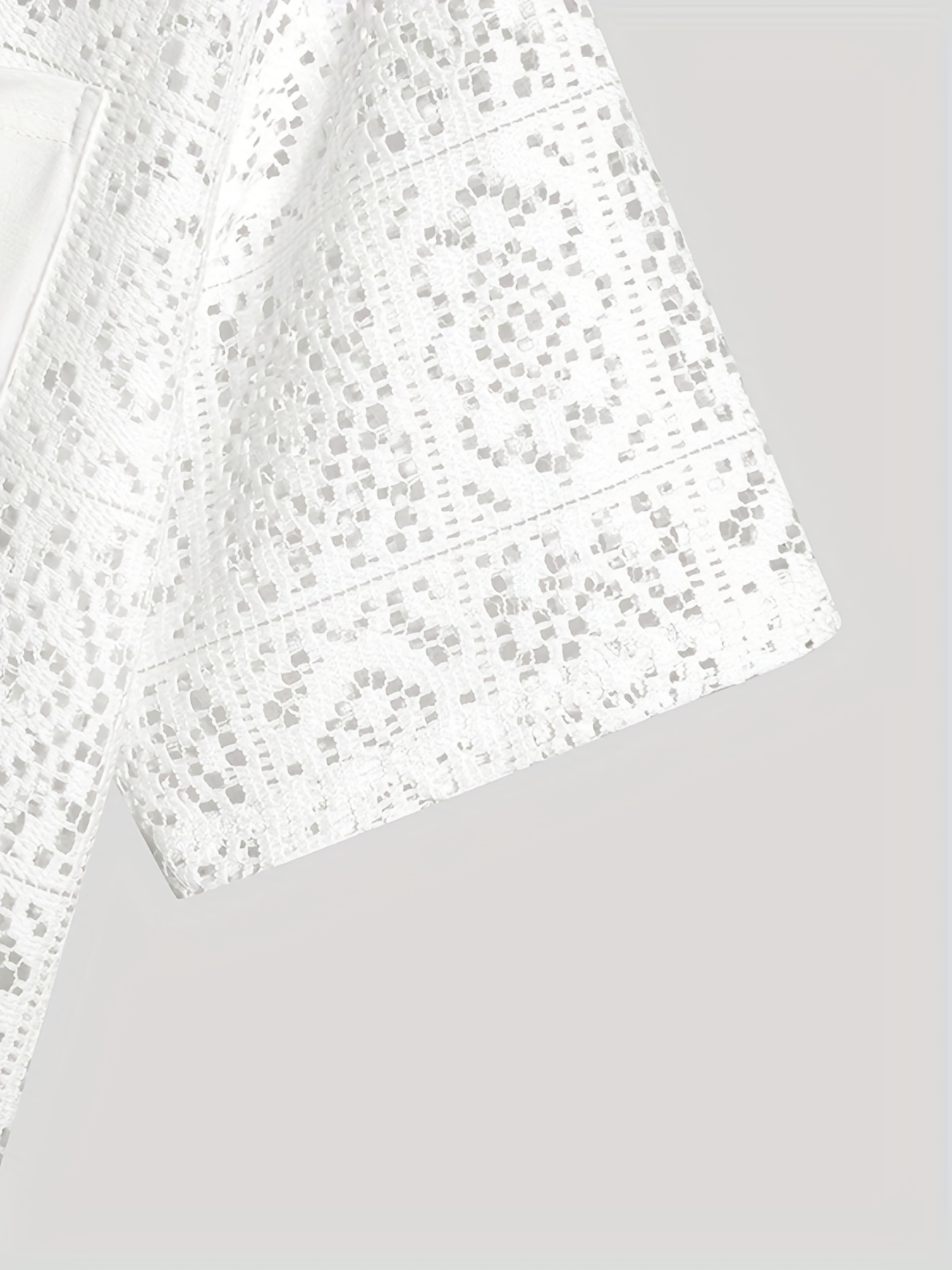 Men's Shirt Top, Solid Lace Hollow Out Design Lapel Short Sleeve Closure Summer Sexy Casual Button Up Shirt
